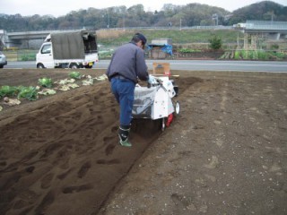 4.縦(横)方向に耕起・異物除去と薬剤散布を行っています